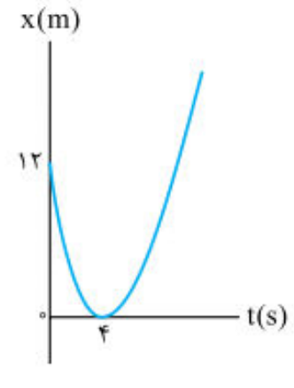 مطابق شکل زیر ، نمودار مکان – زمان متحرکی به صورت سهمی است . سرعت متحرک در لحظۀ t = 8s چند متر بر ثانیه است ؟