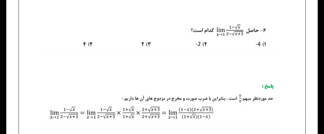 مبحث تدریس شده : مبحث حد از حسابان یازدهم