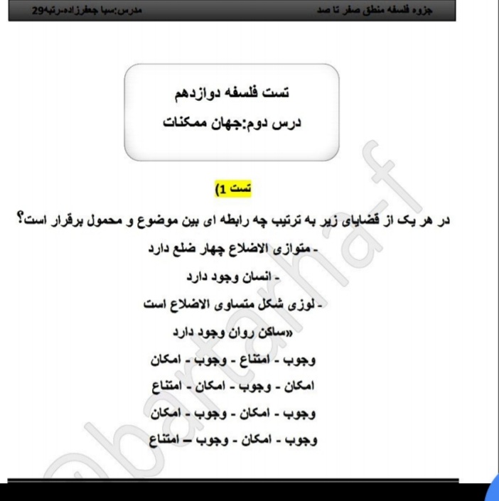 مبحث تدریس شده : جهان ممکنات درس دوم فلسفه دوازدهم