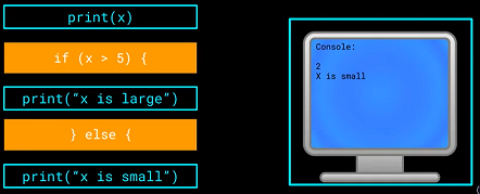 اگر قرار بود وقتی برنامهتون به این خط از کدتون رسید x بزرگتر از 5 باشه ولی به دلایلی تو console x کوچک است رو نمایش میده، میتونید برای رفع این مشکل از جمله پرینتشده استفاده بکنید. تو مورد بالا یه Print (x) قبل از شرطیتون قرار بدید. حالا اگه برنامه رو اجرا بکنید دقیقاً میدونید که کامپیوتر چه فکری میکنه. با این کار شما میتونید بفهمید که متغیر xتون همون ارزشی رو داره که منظور نظر شماست. در غیر این صورت متوجه میشید که یه جای شرطیتون خطایی رخ داده و متغیرتون ارزشی به خودش گرفته که مطلوب شما نیست.