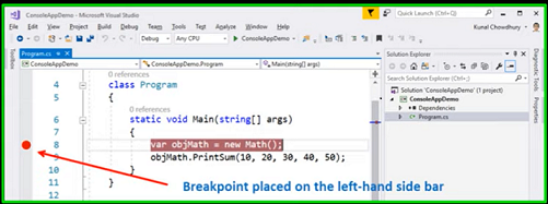 نقطه انفصال برنامهتون رو دقیقاً همون جایی که مشخص کردید متوقف میکنه. اگر بخوایید برنامهتون از طریق یه شرطی اجرا بشه و یه متغیر رو بر مبنای اون شرطی ایجاد بکنید اما از ایجاد شدن این حالت در کدتون مطمئن نیستید میتونید یه نقطه انفصال درون شرطیای که انتظار اجراش رو دارید قرار بدید.