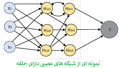توجه داشته باشید که این شبکه، یک شبکه یک سویه هست .به عبارت دیگه، در این شبکه اطلاعات تنها از یک مسیر حرکت میکند که جهت آن رو به جلو میباشد. در واقع اطلاعات باشروع از گره (نورون) های ورودی و گذر از لایههای پنهان (درصورت وجود) به سمت گرههای خروجی میروند. همانطور که گفته شد در این شبکه حلقه یا دوری وجود نداره. در شکل زیر، شبکه عصبی رو مشاهده میکنید که یک طرفه نیست و دارای حلقه هست .