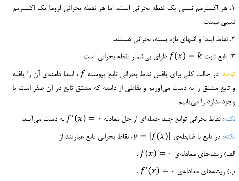 در این مطلب میخواهیم به جمع بندی مباحث اکسترممهای نسبی و مطلق و نقاط بحرانی به همراه حل تست بپردازیم.