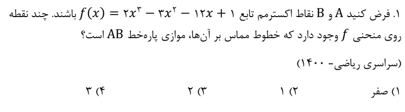تعداد تست های طراحی شده از این فصل در کنکور: از این مبحث در کنکور 1400 یک تست طرح شده است.
