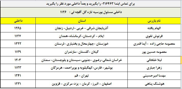 اگر تا ساعت 24 روز اعلام شده ، کد جایزه برای شما پیامک نشد ، نام و نام خانوادگی و شمارنده خود را به شماره 100008453 پیامک کنید و کد را دریافت کنید و یا این که مشکل خود را با واحد بورسیه خانم آقچلی و همکاران واحد بورسیه طبق جدول زیردر میان بگذارید .