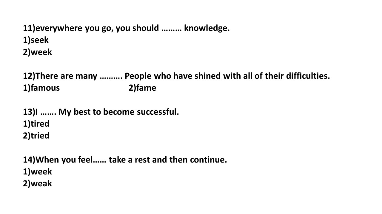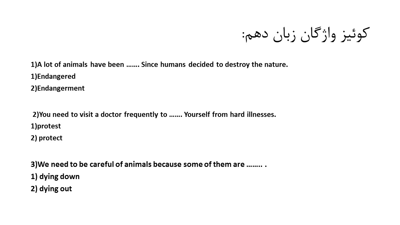 20 کوئیز از واژگان جهت تثبیت مطلب