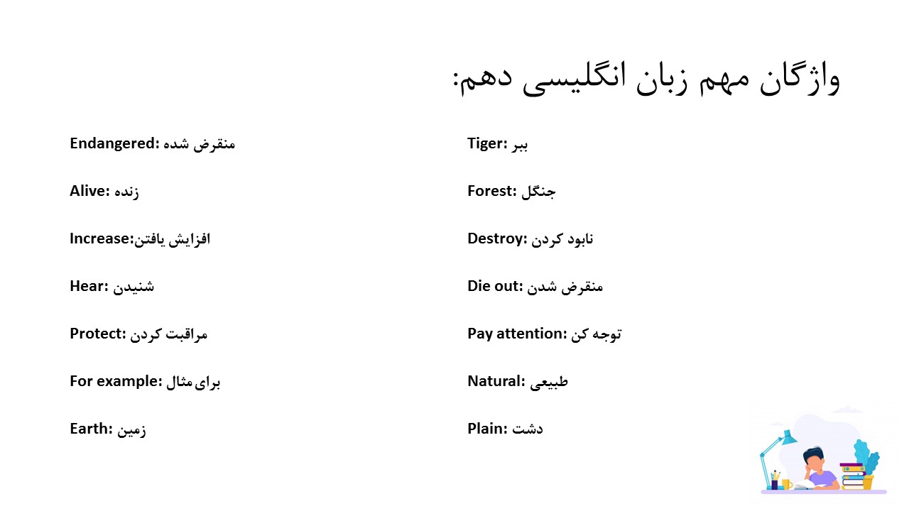 مهمترین واژگان زبان انگلیسی دهم برای دوران جمع بندی