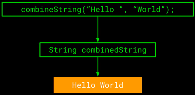 فرض کنید که کارکردی رو ساختید که دو تا متغیر رشتهای به عنوان Argument داره و اونها رو باهم ترکیب کرده. طبیعیه که این دو تا متغیر رو به عنوان یه متغیر واحد به ما تحویل میده.