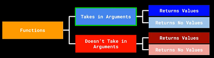 خب دوباره مرور میکنیم. چهار تا کارکرد داشتیم. اولی کارکردی که Argument داره و ارزشی رو به دست میده. دومی کارکردی که Argument داره اما ارزشی رو به دست میده. سومی Argumentی نداره ولی ارزش به دست میده و در نهایت کارکردی که نه Argumentی داره و نه ارزشی رو به دست میده.
