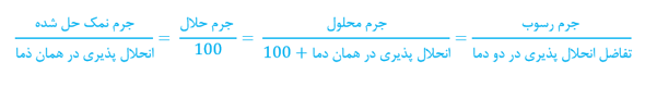 نکته: اگر در مسائلی جرم رسوب تولید شده ضمن کاهش دما (در نمودار های صعودی) و یا افزایش دما (در نمودار های نزولی) خواسته شود، می توان از کسرهای تناسبی زیر استفاده کرد.