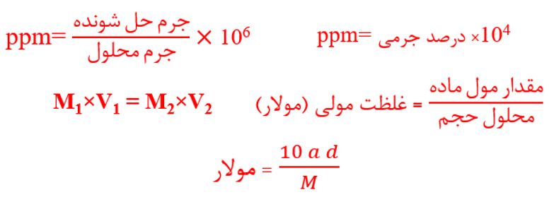 غلظت یک محلول برابر با مقدار حل شونده در مقدار معینی از حلال یا محلول تعریف می شود. برای بیان غلظت محلول های بسیار رقیق از کمیتی به نام قسمت در میلیون(ppm) استفاده می شود.