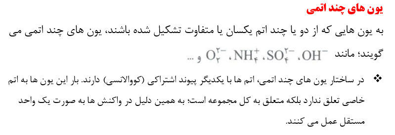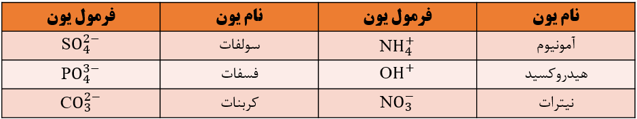 است. برخی از یون ها به طور طبیعی در آب حل شده اند و برخی دیگر مانند یون فلوئورید، در مراکز تأمین آب آشامیدنی سالم، به آب افزوده می شوند. وجود مقدار بسیار کم یون فلوئورید در آب آشامیدنی باعث حفظ سلامت دندان ها می شود و آب باران در هوای پاک تقریبا خالص است؛ زیرا هنگام تشکیل برف و باران، تقریبا همه مواد حل شده در آب، از آن جدا می شوند. این فرایند الگویی برای تهیه آب خالص است که به آن فرایند «تقطیر» و فراورده حاصل از آن را «آب مقطر» می گویند. و یکی از روش های شناسایی یون ها در آب یا محلول حاوی این یون ها، اضافه کردن محلول یک ترکیب یونی دیگر به آنهاست؛ به طوری که با یون موردنظر ما رسوب (ماده نامحلول) تشکیل دهد.