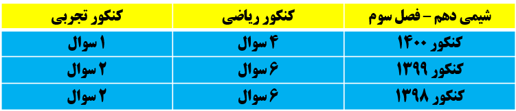 در این مطلب می خواهیم به جمع بندی خلاصه نکات و حفظیات مبحث فصل سوم از شیمی دهم مطابق با بودجه بندی آزمون 2 اردیبهشت که برای پاسخگویی به سوالات آزمون باید به آنها مسلط باشید، بپردازیم.