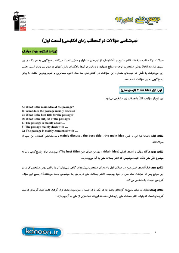 سوالات درک مطلب زبان انگليسي را چگونه پاسخ دهيم؟(ويژه کنکور)