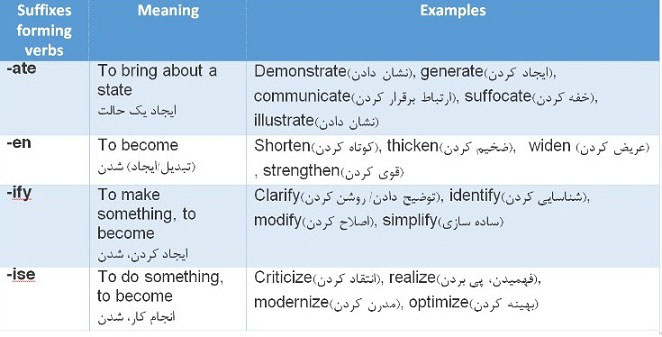 پسوند فعل: حرف یا حروفی هستند که با اضافه شدن به انتهای یک واژه، کلمهای جدید میسازند.