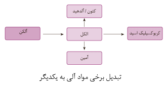 2- در اثر حذف گروه هیدروکسیل الکل ها و قرار دادن گروه آمینی (NH3-) به جای آن ها، می توان الکل ها را به آمین تبدیل کرد.