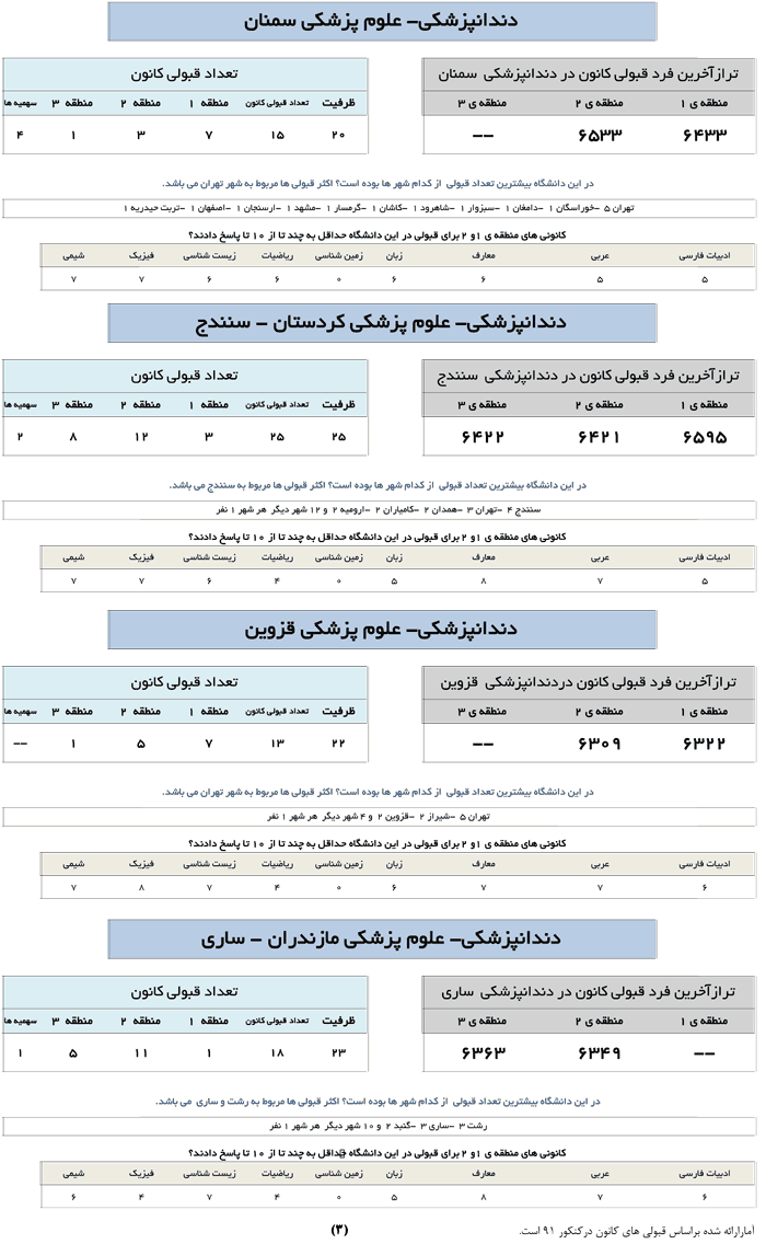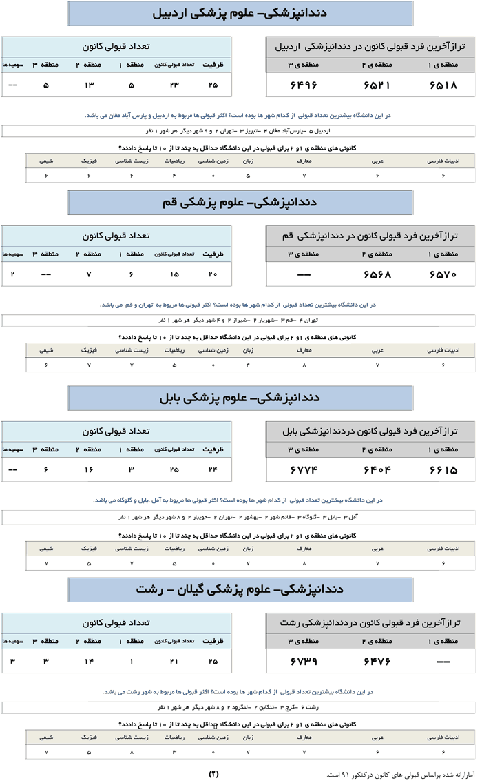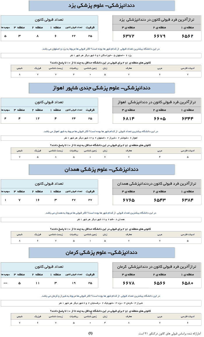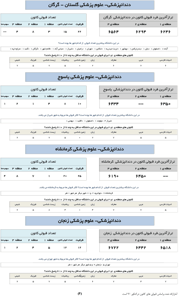 در جدول زیر تراز آخرین فرد قبول شده کانونی در رشته دندان پزشکی در دانشگاه های مختلف ارائه شده است.درگزارش قبلی تراز لازم برای ارائه شد.