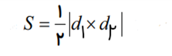 مساحت متوازي الاضلاعي كه دو قطر آنd1 و d2باشد به صورت زیر میباشد: