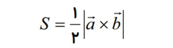مساحت مثلث بین این دو بردار نیز نصف مساحت بالا می شود: