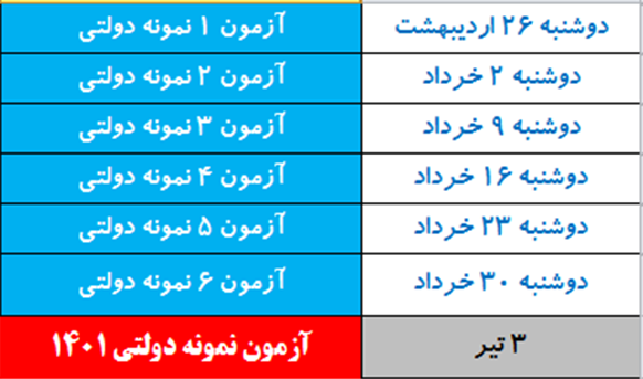 توجه : این آزمون ها برای دانش آموزان بورسیه رایگان است .