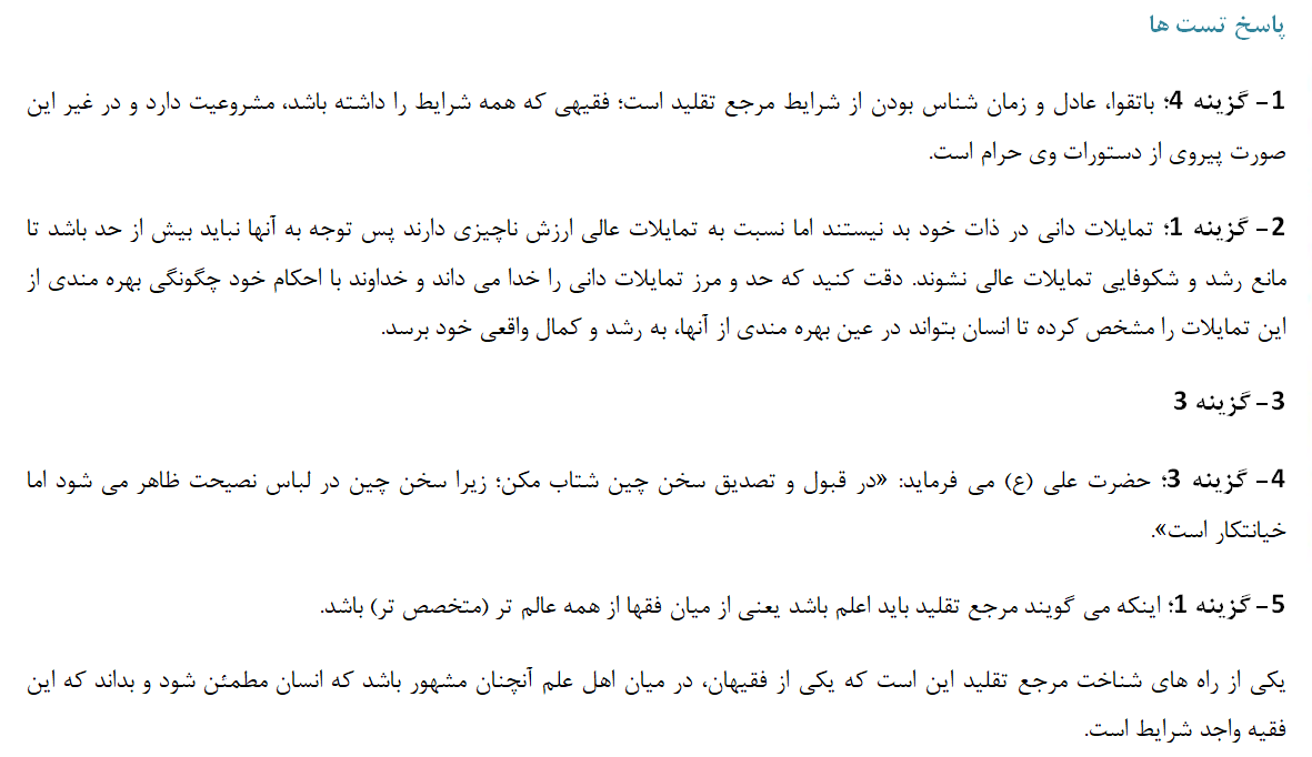 5- اعلم بودن در شرایط مرجع تقلید به چه معناست و راه شناخت آن چگونه است؟ (نسبتا دشوار - سراسری ریاضی 99)