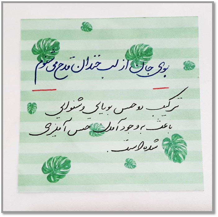 ◼️حسآمیزی ، آمیختن ویژگی ها و اعمال دو حس متفاوت ، یا نسبت دادن ویژگی حسی به عضو حسی دیگر است .◼️