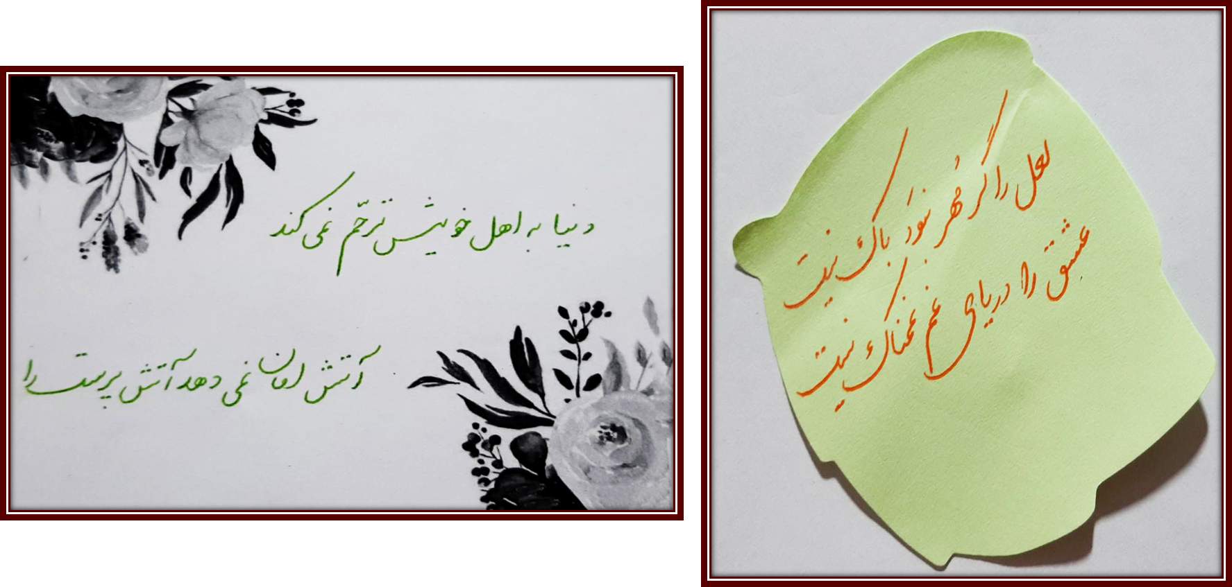 4. به رنگ زرد قناعت کن از ریاض جهان / که رنگ سرخ به خون جگر شود پیدا