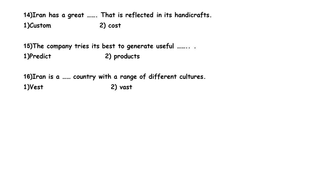 16 کوئیز از واژگان جهت تثبیت مطلب