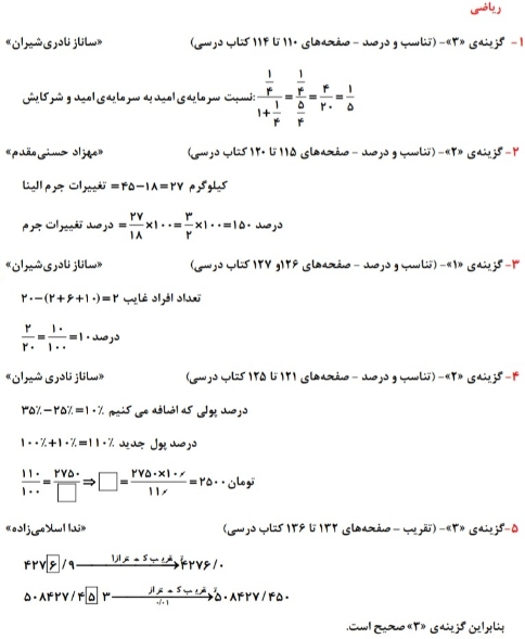 نسبت تناسب کسرتقریب_ریاضی ششم دبستان_نمونه سوال_فاطمه حلاجیان