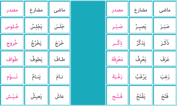 اکنون چند مثال نیز از مصدرهای خارج از این هشت باب ببینید ( چند مثال از مصدرهای ثلاثی مجرد ) :