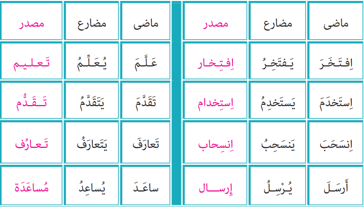 در سال دهم با وزن با قاعده مصدر و فعل ها ( باب های ثلاثی مزید ) آشنا شدید . این وزن ها شامل : افتعال ، استفعال ، انفعال ، إفعال ، تفعیل ، تَفَعُّل ، تفاعل و مفاعلَة می باشند .