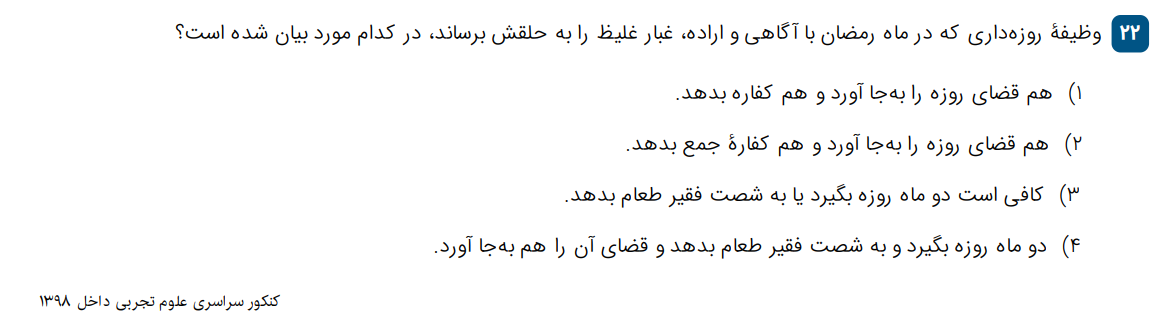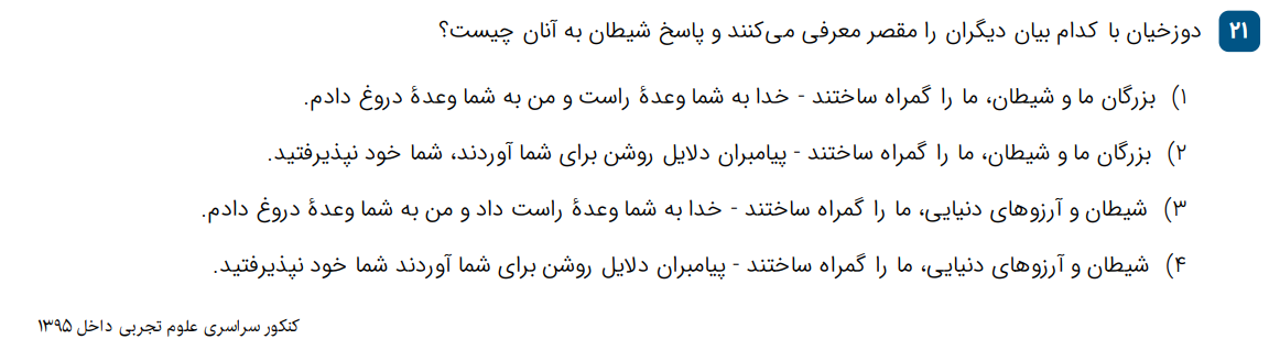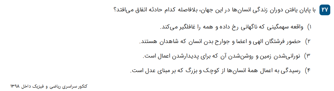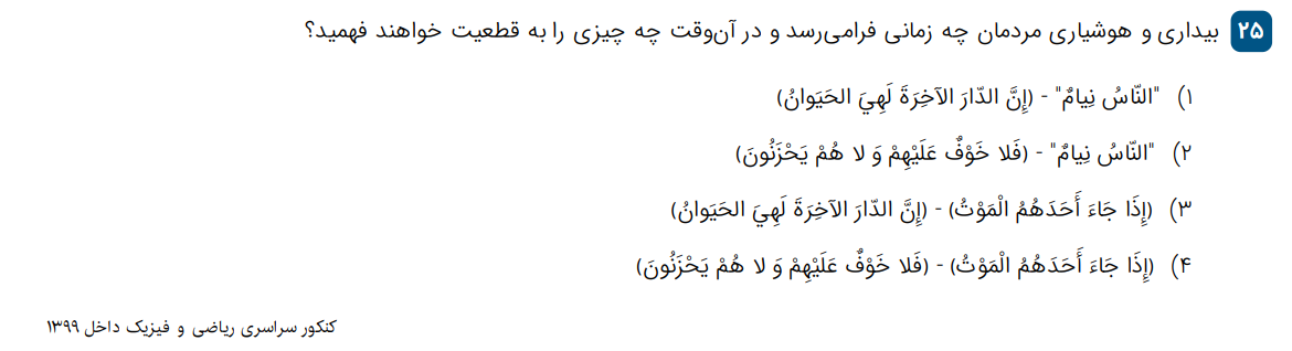 10 تست سری سوم از کل دینی و زندگی کنکور