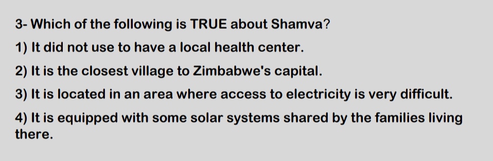 گزینه 2 : آن جا نزدیک ترین روستا به پایتخت زیمبابوه است.