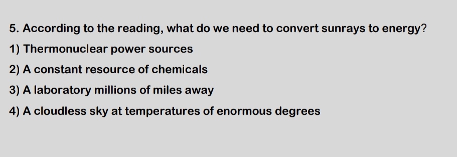 5 - گزینه (3) - بر اساس متن ، ما برای تبدیل اشعه های خورشیدی به انرژی ، به چه چیزی نیاز داریم؟