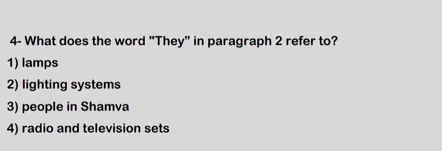 سوال 4 - گزینه (2) - « کلمه They در پاراگراف ۲ به چه چیزی اشاره دارد» « سیستم های روشنایی»