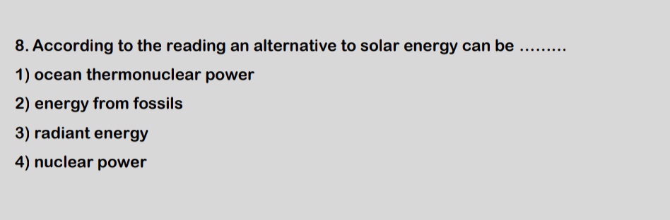 8 - گزینه (1) – بر اساس این متن ................ می تواند جایگزینی برای انرژی خورشیدی باشد.