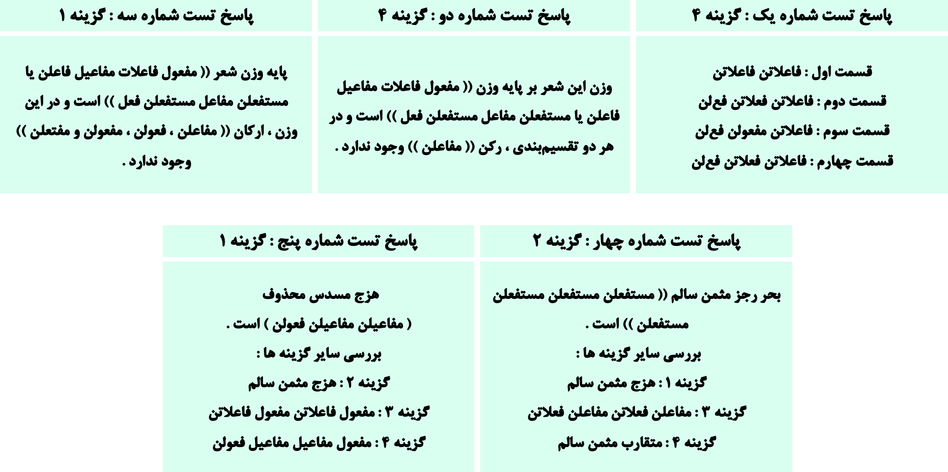 5 تست با پاسخ تشریحی