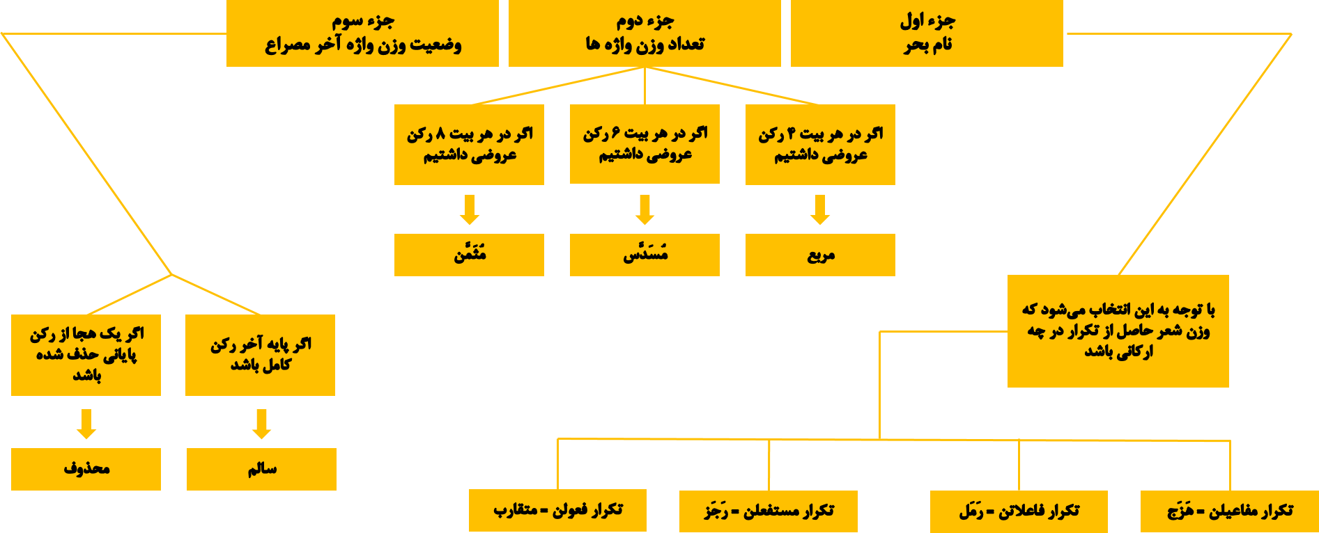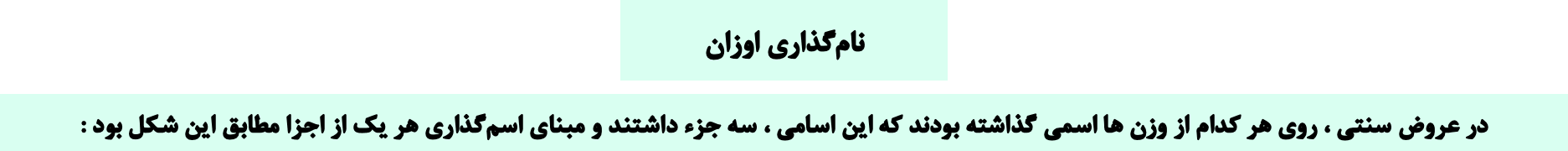 🟡 اگرچه واحد وزن شعر فارسی (( مصراع )) است ، مطابق شیوه عروضی اعراب ، برای نامگذاری وزن ها ، (( بیت )) مبنای محاسبه قرار گرفته است که در عروض سنتی آن را (( بحر )) مینامند . 🟡