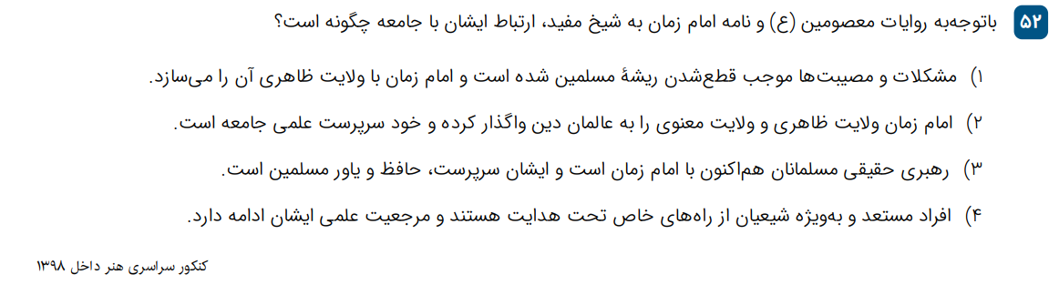 10 تست سری هفدهم از کل دینی و زندگی کنکور
