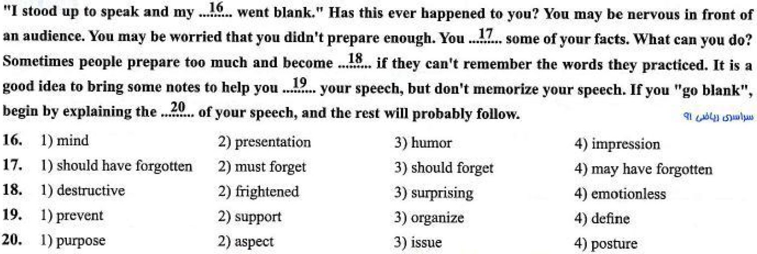 🎁 برای مشاهده و تمرین نمونه سوالات بیشتر ریدینگ، لیسنینگ، کلوز تست و ... می توانید از لینک زیر استفاده کنید:
