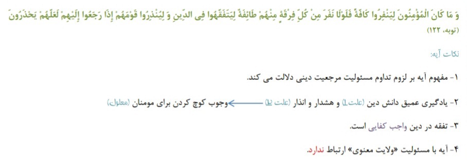 2) وَ مَا كَانَ الْمُؤْمِنُونَ لِيَنْفِرُوا كَافَّةً فَلَوْلَا نَفَرَ مِنْ كُلِّ فِرْقَةٍ مِنْهُمْ طَائِفَةٌ لِيَتَفَقَّهُوا فِي الدِّينِ