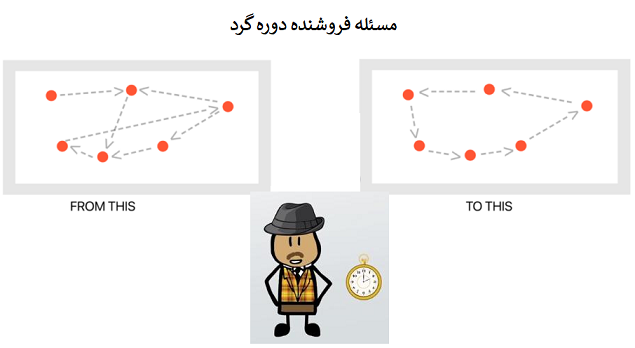 در دنیای اقتصاد، مهندسی، مدیریت و هوش مصنوعی و غیره گاها مسئله ای هایی پیش میاد که برای رسیدن به بهترین روش، باید از یک سری روش های بهینه استفاده بکنیم تا بتونیم با کمترین اتلاف سرمایه، به بهترین جواب ممکن برسیم. در این موضوعات، مسائل بسیاری مطرح شدن که برای رسیدن به جواب بهینه، نیازمند الگوریتم ها و روش ها متنوعی هستیم. اما نکته جذاب و جالب این الگوریتم ها، الگوبرداری متعدد از مسائل دنیای پیرامونی، مانند زیست شناسی، بدن انسان، زندگی حیوانات و غیره صورت گرفته که به تدریج با این روش ها آشنا خواهیم شد. یکی از پر کاربردترین و ساده ترین مسائل معروف در زمینه بهینه سازی، مسئله فروشنده دورهگرد (Traveling Salesman Problem) هست. در این مسئله فرض شده که یک فروشنده دورهگرد قصد داره N تا دونه شهر رو بگرده. اما برای این موضوع، یک سری شرایط مطرح شده. برای مثال این فروشنده از یک شهر نباید دوبار عبور کنه و از همه شهرها باید یک بار عبور کنه و دوباره به شهر اولیه برگردد. سوالی که اینجا پیش میآید و مورد بررسی قرار میگیره، اینه که چگونه این فروشنده در کمترین زمان، این مسافرت را طی می کنه و یا اینکه چطوری کمترین مسافت رو در این سفر قراره داشته باشه؟