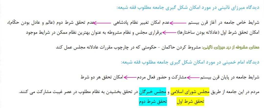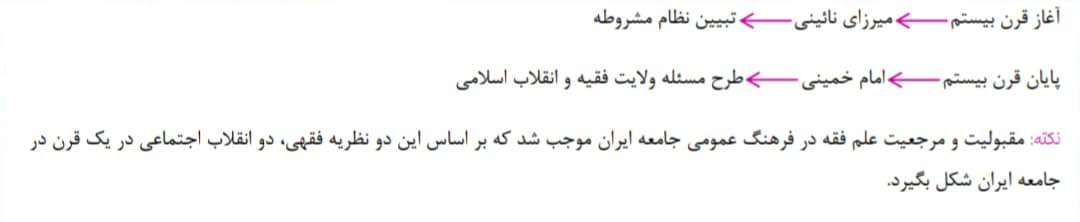 نکته: مقبولیت و مرجعیت علم فقه در فرهنگ عمومی جامعه ایران موجب شد که بر اساس این دو نظریه فقهی، دو انقلاب اجتماعی در یک قرن در جامعه ایران شكل بگیرد.