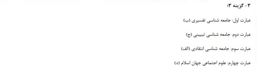 ۱- عبارت درست در رابطه با ویژگی های علوم اجتماعی جهان اسلام، کدام است؟ (نسبتا دشوار، - سراسری ۱۴۰۰)