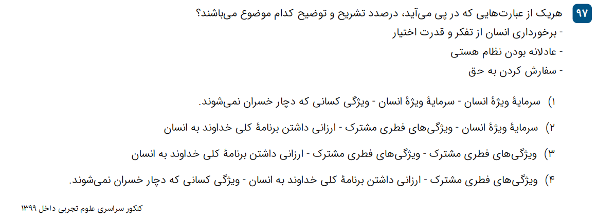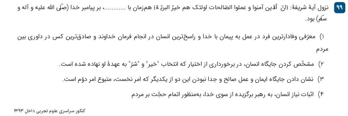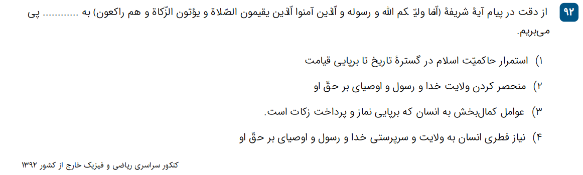 10 تست سری بیست و یکم از کل دینی و زندگی کنکور