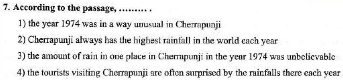 در سال 1974 رکورد باران در دنیا در این منطقه شکست پس این یه اتفاق معمولی usual نیست پس گزینه 1 صحیح است.