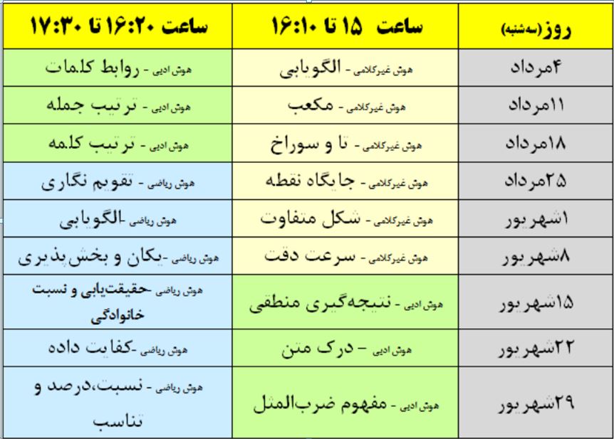 در ادامه برنامه کلاسهای تابستان نیز نمایش داده شد: