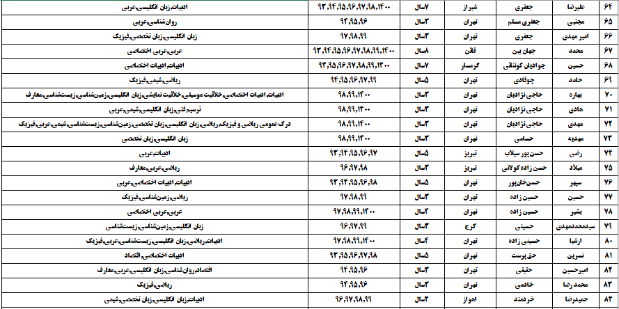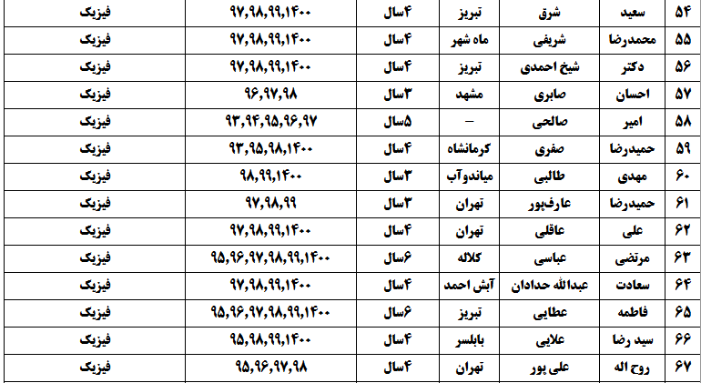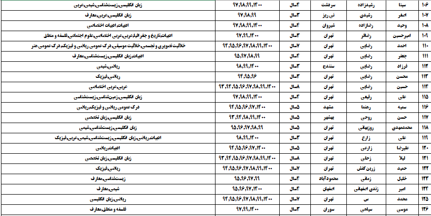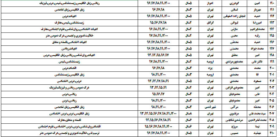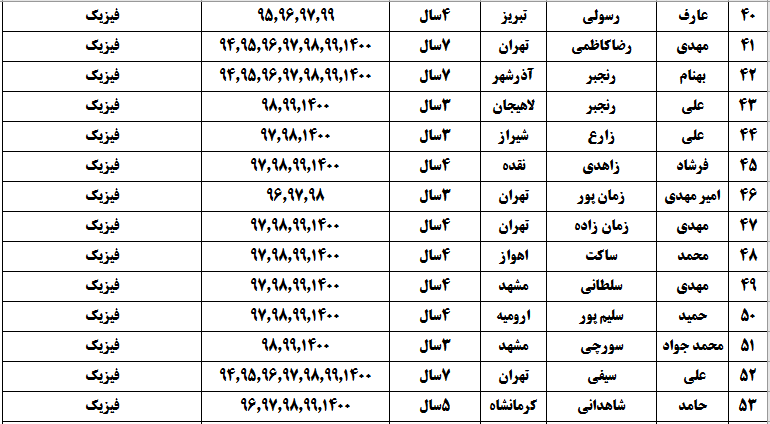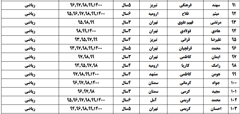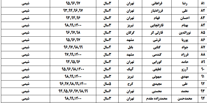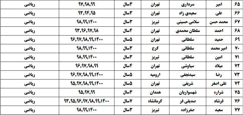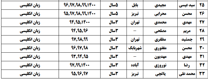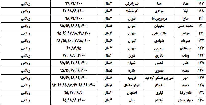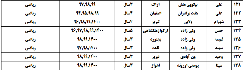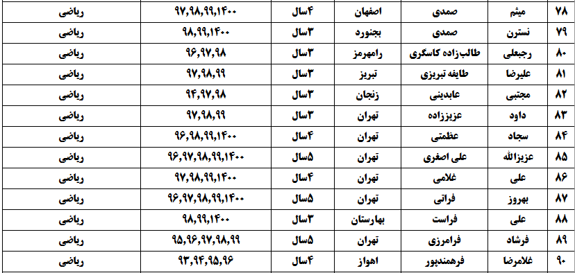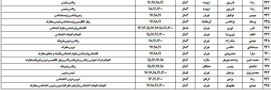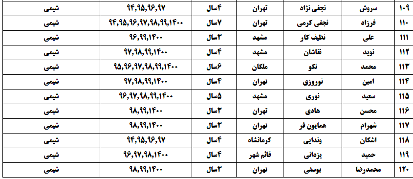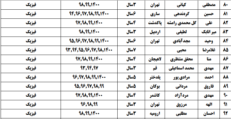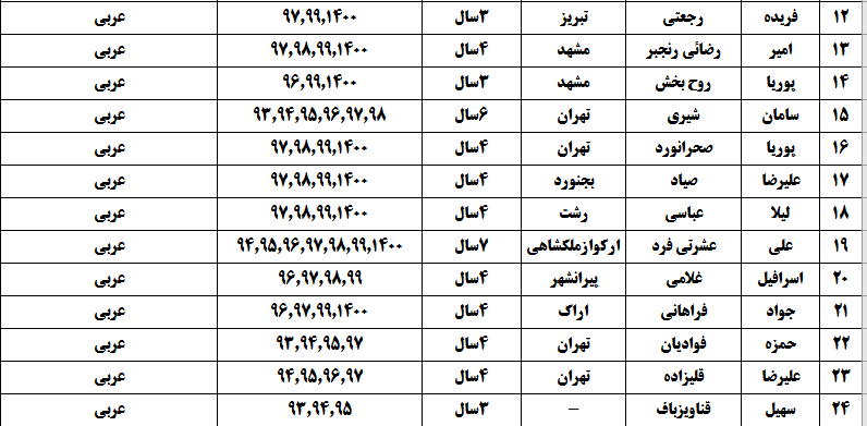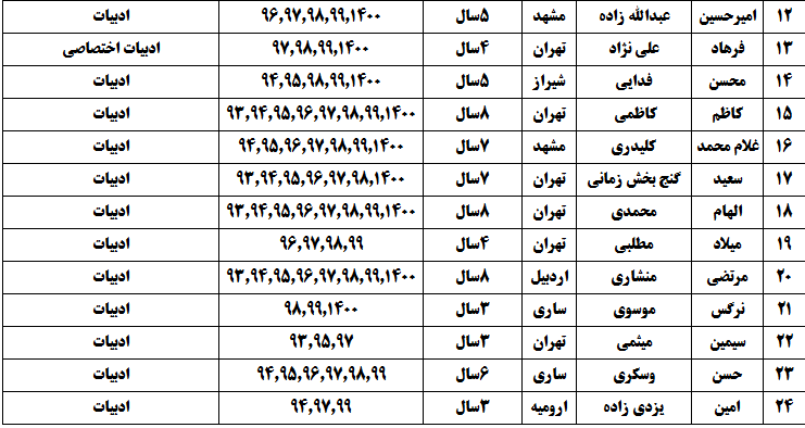 درجدول ذیل نام دبیران و رتبههای برتر را که بیش از سه سال متوالی در این پروژه پرهیجان و علمی شرکت کردهاند، که مرتب شده بر اساس نام درس و نام دبیر است را مشاهده میکنید: