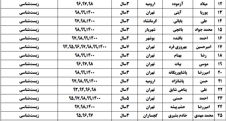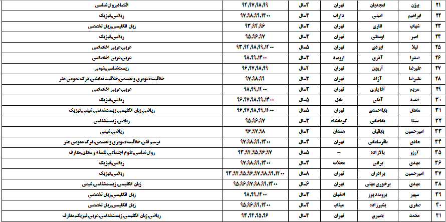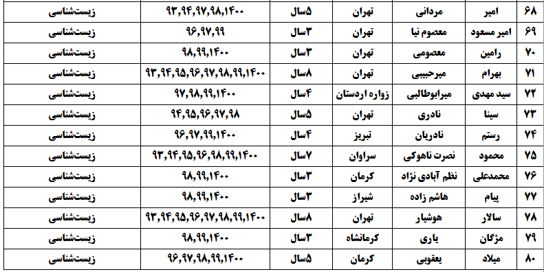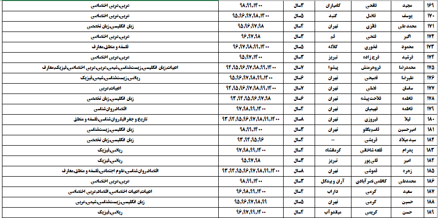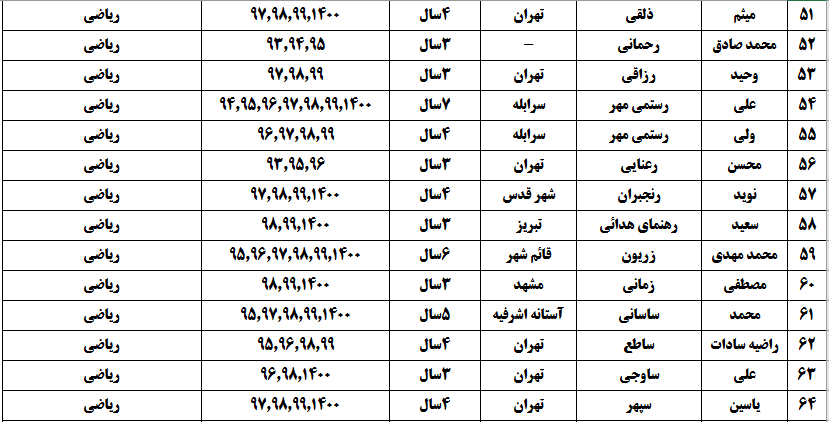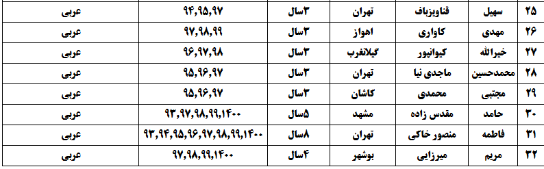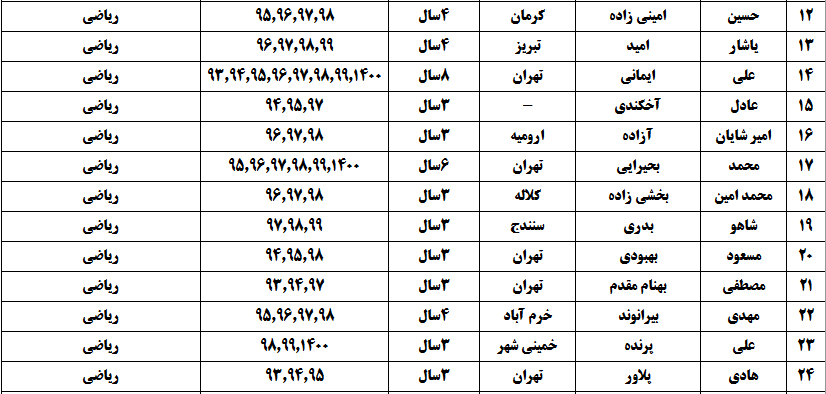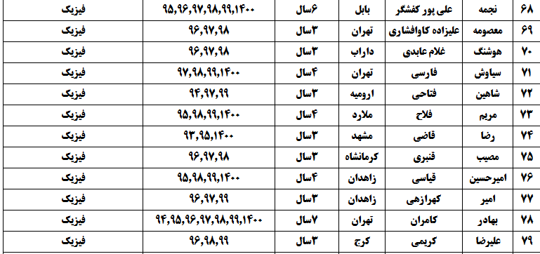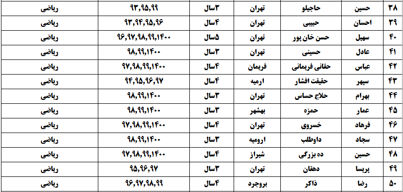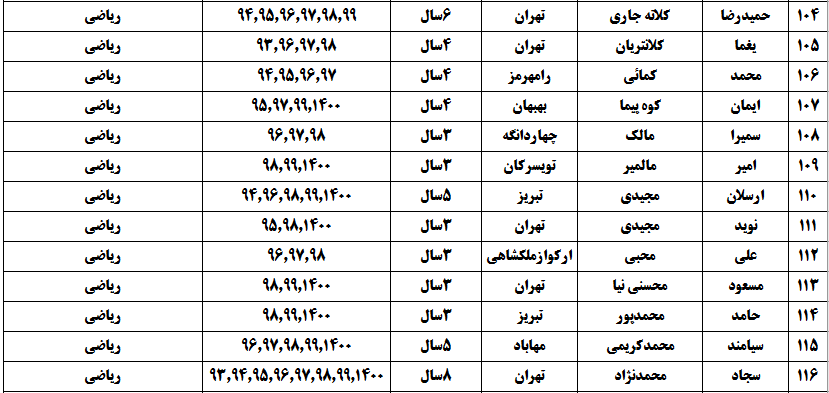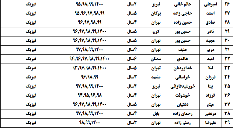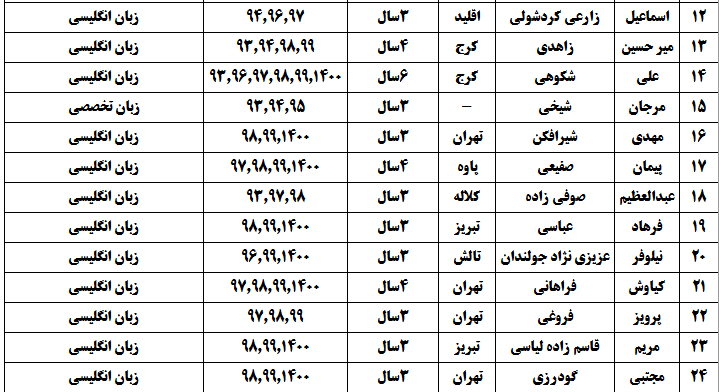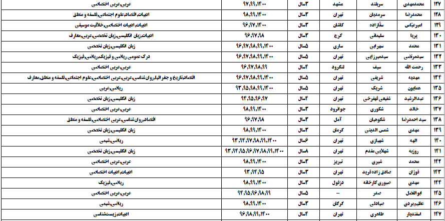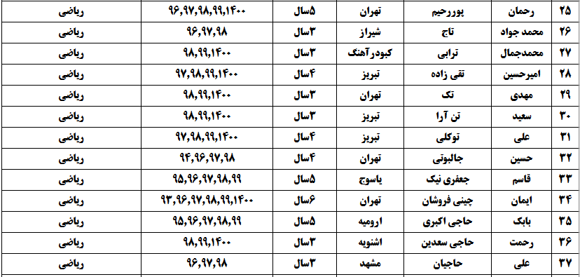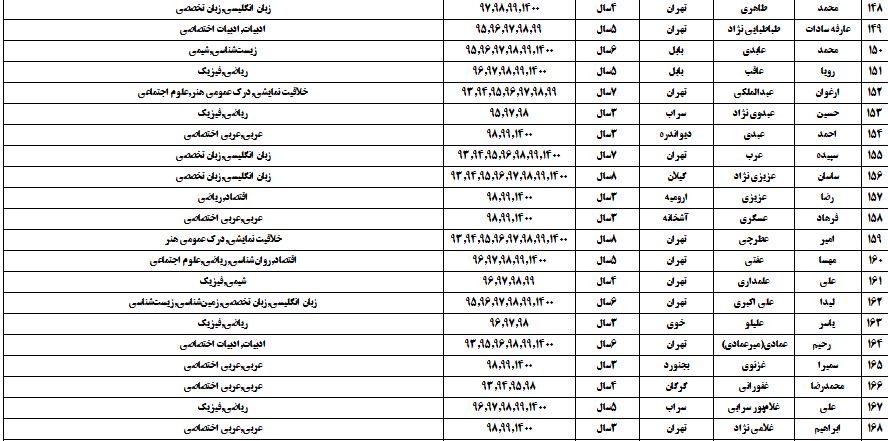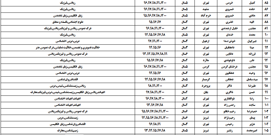 درجدول ذیل نام دبیران و رتبههای برتر را که بیش از سه سال متوالی در این پروژه پرهیجان و علمی شرکت کردهاند، که مرتب شده بر اساس نام درس و نام دبیر است را مشاهده میکنید:
