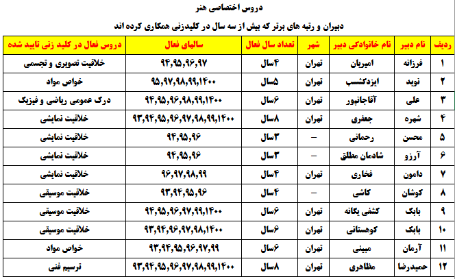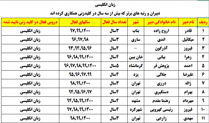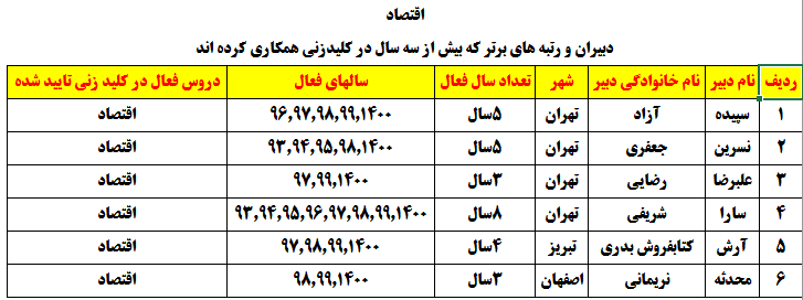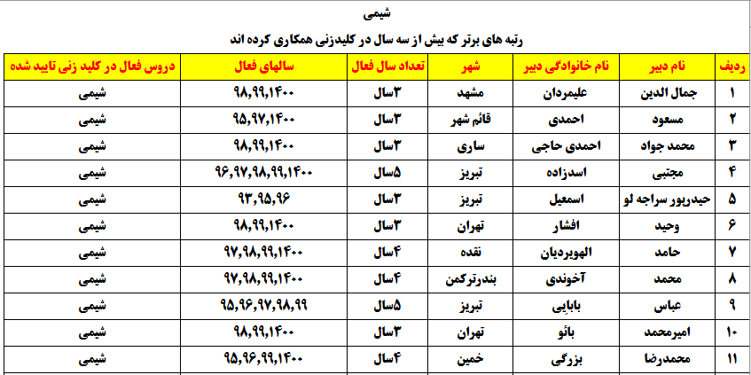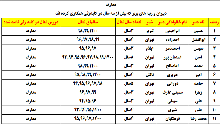 دبیرانی که در چند درس بالای 3 سال در پروژه کلیدزنی شرکت کردهاند :